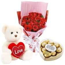 1 Dozen + Ferrero Heart + 2ft teddy +pillowNo Product Detail Available |
